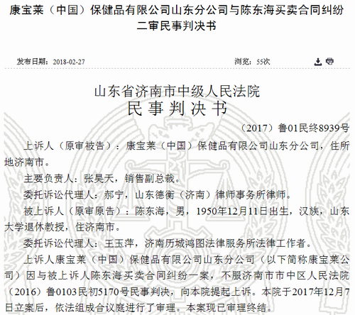 日前,康宝莱(中国)保健品有限公司山东分公司(以下简称康宝莱公司)因将顾客陈某某4万余元的保健品发给他人而惹上官司,法院判决解除买卖合同并责令康宝莱公司返还陈某某货款,前者不服判决结果提起上诉。2月27日,最高裁判文书网发布《康宝莱(中国)保健品有限公司山东分公司与陈某某买卖合同纠纷二审民事判决书》,山东省济南市中级人民法院二审认定康宝莱公司的上诉请求无事实依据,依法维持一审原判。