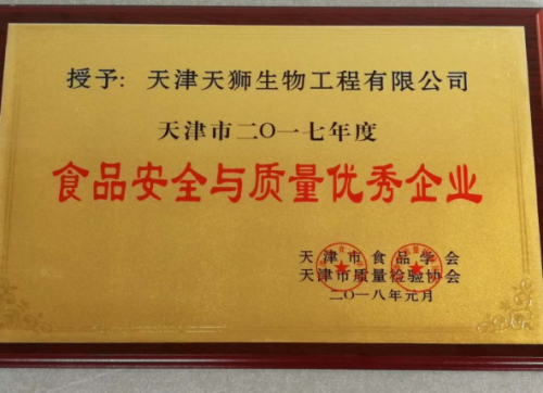 天狮集团荣获2017年度食品安全与质量优秀企业和天津市食品安全示范企业称号。积极为消费者权益在第一线严格把关,提供最优质的产品。