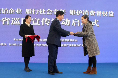 此次活动由湖南省工商行政管理局、湖南省消费委员会主办,湖南广播电视台广播传媒中心、长沙市工商行政管理局、长沙市消费委员会共同协办。旨在深入贯彻党的十九大、全国金融工作会议及中央经济工作会议精神,按照坚决打好防范化解重大风险攻坚战的总要求,扎实有效开展打击传销、规范直销,引导直销业严格按照《直销管理条例》发展。