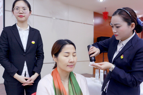 随后,权健辽宁分公司运管专员何美然老师现场请出一位事业伙伴,配合完成了化妆的技巧演示。让大家亲眼感受到欧玛的魅力。