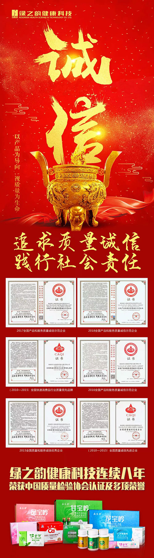 质量,是绿之韵健康科技面向消费者和市场的重要载体;品质,是绿之韵健康科技领跑大健康产业的核心基因;诚信,是绿之韵健康科技企业文化核心价值的集中体现。自成立以来,绿之韵健康科技凭借卓然精进的企业品格,在不断努力和创新的基础上,始终将产品质量视为企业发展战略的基石,严格把控产品质量,落实主体责任,全力打造产品质量管理和安全防护体系,不断为广大消费者提供了高品质、可信赖的绿色健康产品。