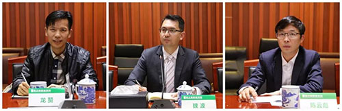 东方国际商学院副院长龙赞,绿之韵健康科技副总经理、东方国际商学院执行院长魏波,企划总监陈云彪