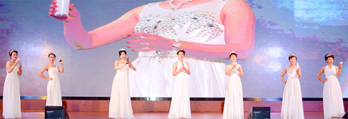 为了让事业伙伴们近距离感受欧玛产品,权健美容部叶明老师现场为大家进行了欧码护肤产品演示。从卸妆到上妆,大家亲眼见证了欧码护肤产品的魅力,也更加有信心,欧码产品一定会受到市场的欢迎。随后,一组身着白色长裙的模特为大家带来了欧玛护肤系列产品秀,令现场的伙伴们为之欢呼。