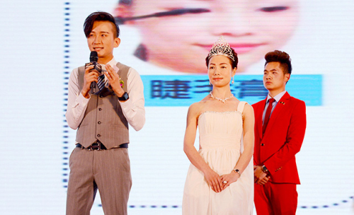 权健美容部刘洋老师为模特上妆