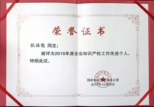 福能源耿福能获“全国知识产权工作先进个人”