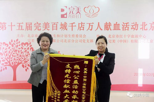 “3·15国际消费者权益日”当天,完美北京分公司用一种特殊的方式展示完美的诚信和品质。北京分公司联合北京市丰台区卫生和计划生育委员会、北京市红十字血液中心,在市血液中心举办“第十五届完美百城千店万人献血活动”。