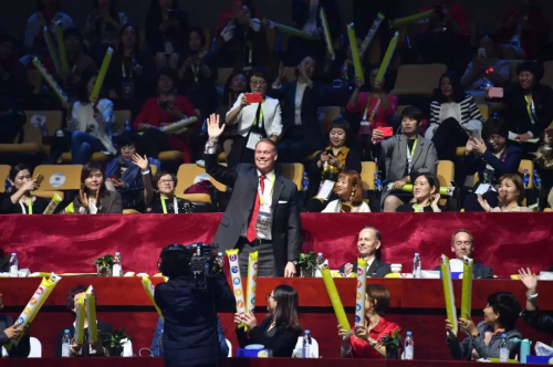 Thomas总裁振奋人心的激励,瞬间点燃了伙伴们的激情,台下一片欢呼的海洋,伙伴们纷纷挥舞发光手环,“新纪元,赢未来”的主题口号如雷贯耳,响彻全场!