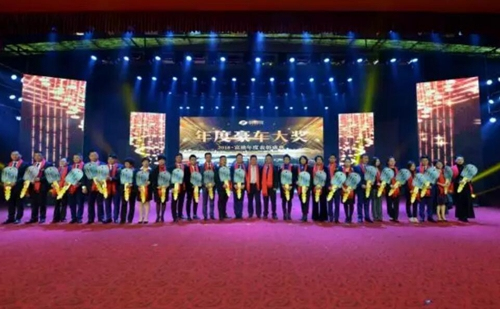 林万兴先生、栾宝田先生为“奔驰豪车大奖”获得者颁奖并合影
