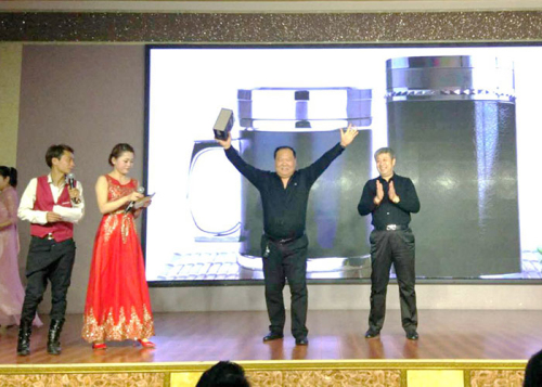 激动人心的抽奖环节、精彩纷呈的歌舞表演,让现场气氛高潮迭起,全场充满了欢快幸福的气氛。最后,公司领导及市场领导人集体上台敬酒,祝福团队明天更加辉煌,新晋六钻经理田华女士庆功晚会圆满落幕。