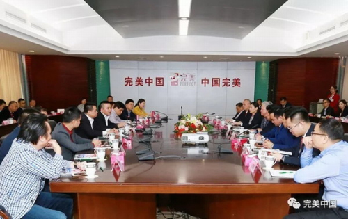 “客家商会队伍再添一位重量级导师!”3月22日,广东省客家商会一行50人在会长温纯青带领下,走进完美(中国)有限公司参观交流。完美公司董事长古润金热情欢迎商会一行,并欣然应邀担任商会名誉会长。