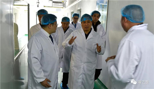 领导移步生产基地,高科技化的生产厂区和洁净度十万级的生产车间得到了领导的肯定。制药级原料的采购把控,制药级标准生产的恪守,车间内各种精尖设备的使用,和精益求精的制造流程,向领导一行展示了海之圣产品的品质构成。