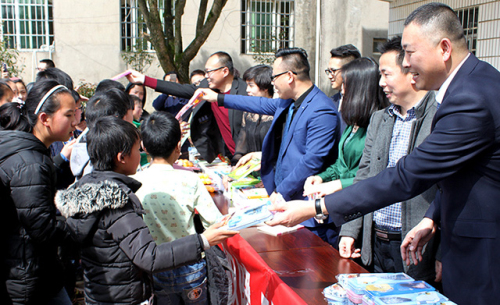 为孩子们发放图书文具