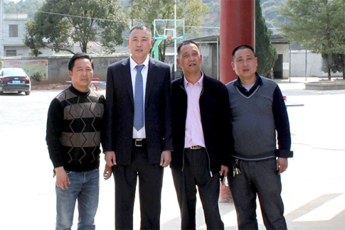 权健湖北分公司经理王然与上余村领导及学校校长合影