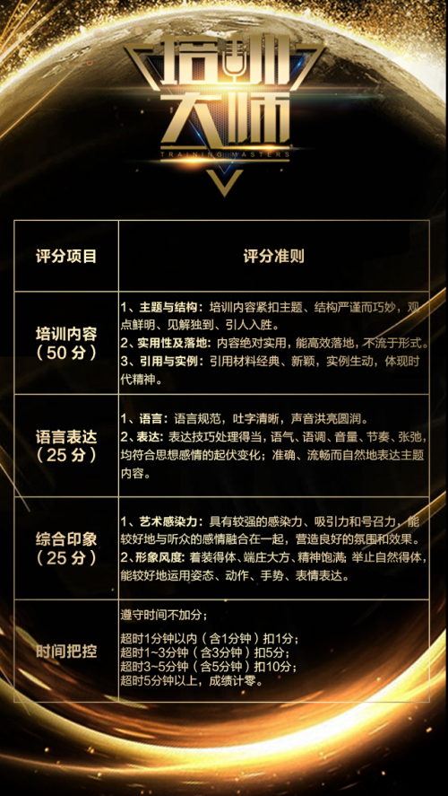 此外,为保证比赛的公平公正,本次比赛的评委依旧由主办方、承办方、专业评审、媒体评审共同组成。他们将根据选手的演讲内容、语言表达、综合表现等方面进行综合评分,并做精彩点评。选手的综合评分将取平均分(具体评分机制见下文)。最终,得分最高的前三位参赛者进入总决赛,并获得由主办方颁发的荣誉证书及总决赛通行卡。