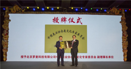 罗麦科技以鹿为首的养生理念,得到行业认可。中国鹿业协会鹿文化专家委员会会长宋胜利,授予罗麦“中国鹿业协会鹿文化专家委员会副理事长单位”称号,马总代表罗麦科技接受荣誉。