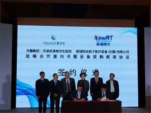 天狮泰济生医疗事业部在会议期间,与新瑞阳光粒子医疗装备(无锡)有限公司战略合作意向书,双方就设备采购签订合作框架协议,希冀借由各自在医疗健康领域的优势资源,为肿瘤患者提供更好的综合治疗方式。天狮泰济生事业部总经理果洪涛、新瑞阳光总经理彭晟分别代表双方签约,无锡市政协副主席秦蕴石、无锡市梁溪区区长秦咏薪、北京大学医学部放射肿瘤学系终身荣誉教授申文江、清华大学第二附属医院副院长唐劲天、北京大学肿瘤物理诊疗技术研究中心主任包尚联、天狮集团泰济生事业部财务总监李德华出席仪式并见证签约。