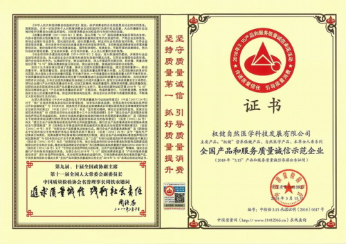 刚刚过去的“3.15”国际消费者权益日,在中国质量检验协会开展的2018年“3.15”“产品和服务质量诚信承诺”主题活动中,经过专业评委的严格审查和层层筛选,权健凭借“权健”营养保健产品、自然医学产品、本草女人香等产品的精臻品质以及真诚服务,荣获“全国产品和服务质量诚信示范企业”和“全国质量信用先进单位”殊荣。