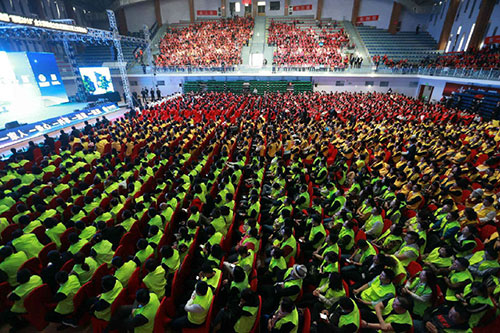 此次盛会的主题是2018年金木事业誓师会,也是对全年工作认真规划和分析的求真务实的大会。中国世界贸易组织研究会直销研究专业委员会理事、全国工商联医药商会常务副会长、河北省人大代表,金木集团董事长、总裁钮立卫,集团总顾问徐顺通,中国世贸组织研究会直销专业委员会专家委员许长军,集团常务副总经理刘进水,集团副总经理、董事长特别助理杨云翔等集团高管出席了会议。4000多名金木家人与朋友充满激情,参加大会。