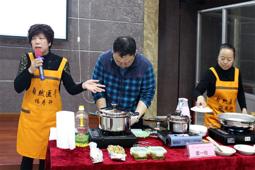 接下来的“美食大比拼”将本次活动氛围推向高潮。参与厨艺PK赛的两组选手们使用权健五行聚能锅,在30分钟内制作出5道以上菜肴,并结合厨具特色及优势进行讲解与演示。