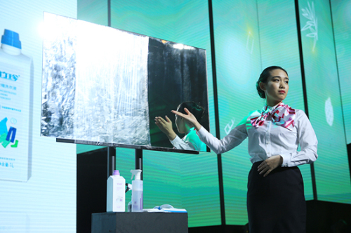 ▲ 竹珍浓缩浴室清洁剂清洁去污力演示