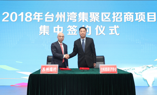 2018年4月10日,绿意盎然的浙江台州,春光明媚,晴空万里。受绿叶科技集团徐建成董事长的委托,李仙霖总裁带领集团高管出席台州湾集聚区招商项目签约仪式,并代表绿叶与台州湾集聚区管委会正式签署107亩工业用地项目合作协议。