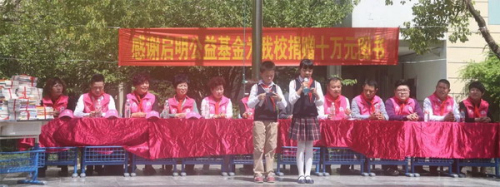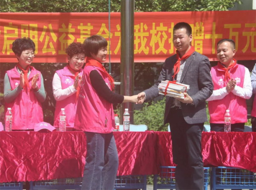 启明公益基金会浙江项目部、北京罗麦科技有限公司浙江分公司市场主管殷祥晶,爱心志愿者史新亚、陈惠琴、陈惠萍、毛连华、高文芳、沈红仙等以及杭州市塘栖三小朱家角分校全体师生参加了捐赠仪式。