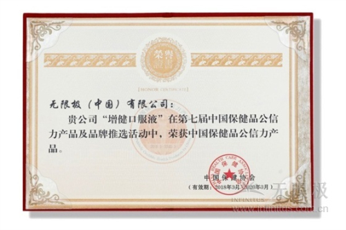 增健口服液荣获“第七届中国保健品公信力产品”奖项