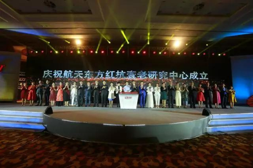 于群专家与东方红公司航天神舟事业群总经理李杰先生、中国空间技术研究院研究员庞欣博士、及公司高层和航天神舟卓越经销商共同为航天东方红抗衰老研究中心成立揭牌。