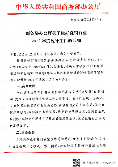 商务部办公厅:做好直销行业2017统计工作