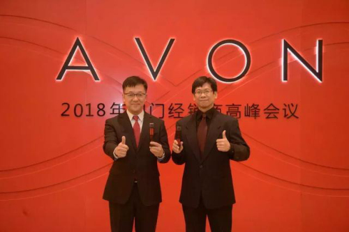 △左为雅芳中国大陆及台湾地区总经理张旭明,右为雅芳(中国)市场部首脑姜瑞昌