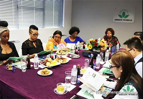 最后,张良军总裁代表绿世界集团向祖鲁王后赠送了公司的产品套装以及具有中国特色的精美礼物,并希望我公司与祖鲁王室的友谊地久天长。祖鲁王后也表示今后将进一步将强合作,为南非人民的健康和发展共同努力。