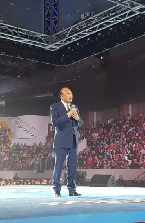 李金元董事长致辞,很想念大家,由于工作的原因,时隔12年才又来到哈萨克斯坦。因为有中亚区域团队领导人的敬业和专业,有中亚区域全体直销商的团结、努力,才使得市场取得这么好的成绩。这次是带着使命来的,要把“一体多翼”战略在明天给大家做详细的讲解。
