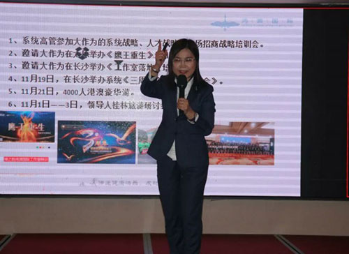 在本次会议,鸿源国际创始人、商学院院长兰红霏就《鸿源国际商学院整体战略规划》、《精英养成训大纲》做了精彩分享,她以专业卓越的行业经验,激情四射的精神状态,赢得了与会领导人的一致认可。