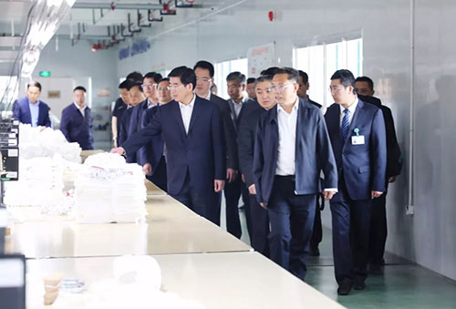 领导一行分别参观了安然智能立体仓储中心、纺织品生产车间,了解了MES系统一物一码在物流、生产中的作用,对安然自动化、信息化、智能化的仓储中心和生产车间表示赞赏。