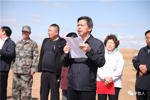 上午10时,清水河县五良太乡宇航人万亩沙棘种植基地举行了揭碑仪式。中国绿化基金会主席陈述贤、内蒙古自治区林业厅副巡视员乔云、内蒙古青年志愿者协会秘书处负责人杨国奇、呼和浩特市委副书记,政府市长,和林格尔新区党工委书记冯玉臻、呼和浩特警备区副司令、中共清水河县委书记云霖琼、清水河县人大常委会主任云月奎、内蒙古宇航人集团董事长邢国良一同为项目揭碑。红色大字的石碑写着“军民共建绿色屏障,治沙扶贫功在千秋”,另一面写着“发展沙棘,利国利民”,在蓝天白云的映衬下,格外雄壮。