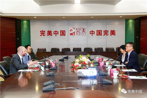 胡瑞连介绍了完美公司的发展历程、智能化生产及公益文化等,给Andrew Ould留下了深刻印象。Andrew Ould表示,完美是一家具有稳健发展实力、强烈社会责任感、超群国际眼光及宏伟愿景的企业,并指出,当前中英两国友好关系进入新的阶段,为中英民间合作提供了重要的机遇,对促进中英人文交流,增进两国人民相互了解与友谊发挥重要的作用。同时,Andrew Ould也对完美公司即将在英国举办海外研讨会表示热烈欢迎,并祝愿研讨会圆满成功!