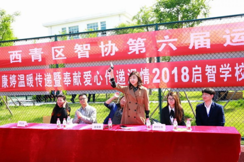 启智学校赵金素校长为运动会致开幕词,赵校长首先对参加此次活动的领导和嘉宾表示热烈的欢迎,并向康婷公司捐赠的春秋季校服表示由衷的感谢。本届运动会以“团结、礼貌、积极参与”为主题,期待同学们能够焕发精神,赛出水平,赛出风格,牢固树立“安全第一、友谊第二”的意识,使运动会稳定有序的进行。由康婷公司企划中心王梓童总监为大会鸣枪,并宣布西青区智协第六届趣味运动会开幕。