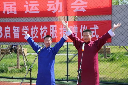 启智学校的孩子与志愿者们为大家带来了天津快板、歌曲串烧、朗诵、歌曲独唱等精彩节目,为趣味运动会增添了一大亮点。