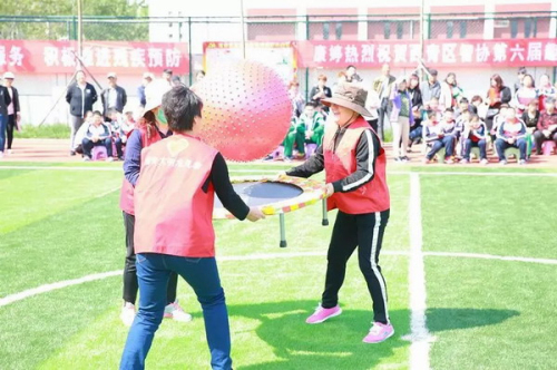 运动会以志愿者队伍与启智学校教职工队伍的颠球和毛毛虫友谊赛开始,包含滚车轮入门、挑战平衡木、推圆环行走、踏石过河、次数定点投圈套象、不同点位投篮等趣味项目,比赛现场充满了孩子们的欢声笑语。