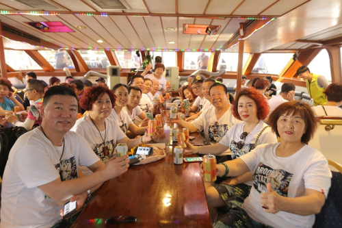 4月17日,伙伴们登上豪华游船,在海上共进晚宴