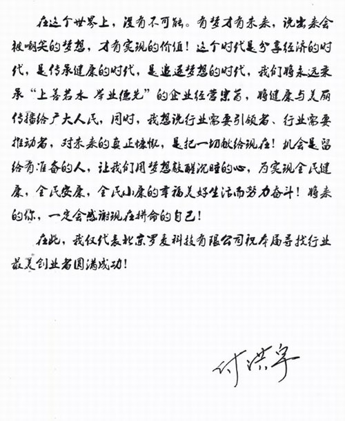 ▲付洪宇先生为本次活动写的祝福语