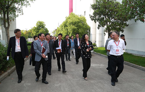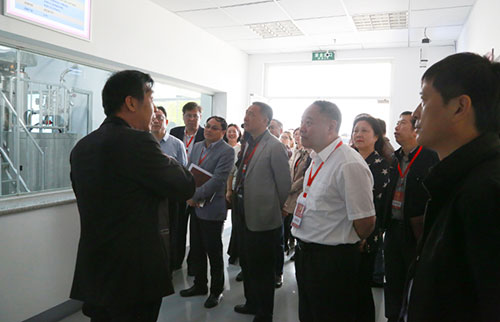 克缇松江工厂相关负责人向参访领导介绍进口自动化生产线