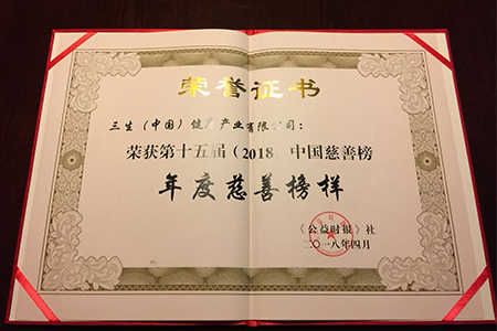 三生荣获“第十五届2018中国慈善榜”大奖