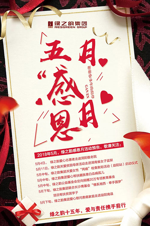 五月爱心感恩月,已经成为绿之韵企业文化的一个鲜明特质和靓丽名片。