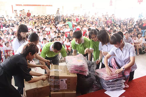 2010年5月,绿之韵爱心志愿者在劳嘉总裁的带领下看望慰问留守儿童,并精心准备了书包、作业本、文具盒、羽毛球拍等爱心物资。留守儿童缺乏父母监护和关爱,容易出现教育、健康、安全等方面的问题,绿之韵十五年来尽力为留守的孩子们解决实际困难,撑起一片健康成长的蓝天。