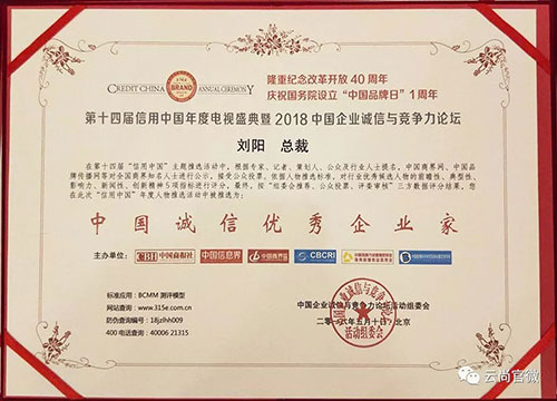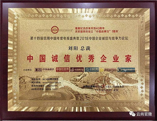 5月10日,由中国商报社、国家发改委《中国信息界》杂志社等媒体机构举办的“2018(第十四届)中国企业诚信与竞争力论坛暨全国改革创新成果案例推介展示活动”在京举行。本次活动以“中国开启品牌塑造新时代”为主题,聚焦新时代中国企业家群体,探寻其成长路径与创新探索。吉林云尚荣获“中国企业竞争力百强”称号、吉林云尚总裁刘阳先生荣获“中国诚信优秀企业家”称号。