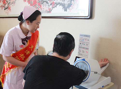 在医院VIP诊区,门诊的护士们为周边居民和患者家属免费进行血压、血糖、心电图的检测,并耐心地解答了他们提出的问题,义诊活动中,护士门认真细致的服务态度赢得了大家的好评。