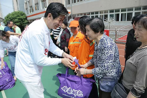 捐赠仪式在社区所在枫树山小学开展,湖橡社区与完美湖南分公司、完美经销商代表共同将50个“母亲邮包”送到各位母亲手中,表达对母亲们节日的问候。