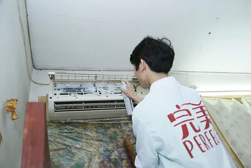 当天,在高级客户总监王自敏的带领下,“完美义工队”走进社区免费为社区居民清洗空调。首站他们来到了“失独妈妈”陈桂香家中。