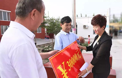 在活动现场,安然新疆分公司向博斯坦村捐赠爱心善款30000元,用于修缮该村18口水井的设备、设施。待水井完成修缮后,将灌溉2000余亩土地,让当地400余户、1800余村民受益。村民还为企业代表赠送了特色花帽,并送上了锦旗,表达了对安然公司的感激之情。